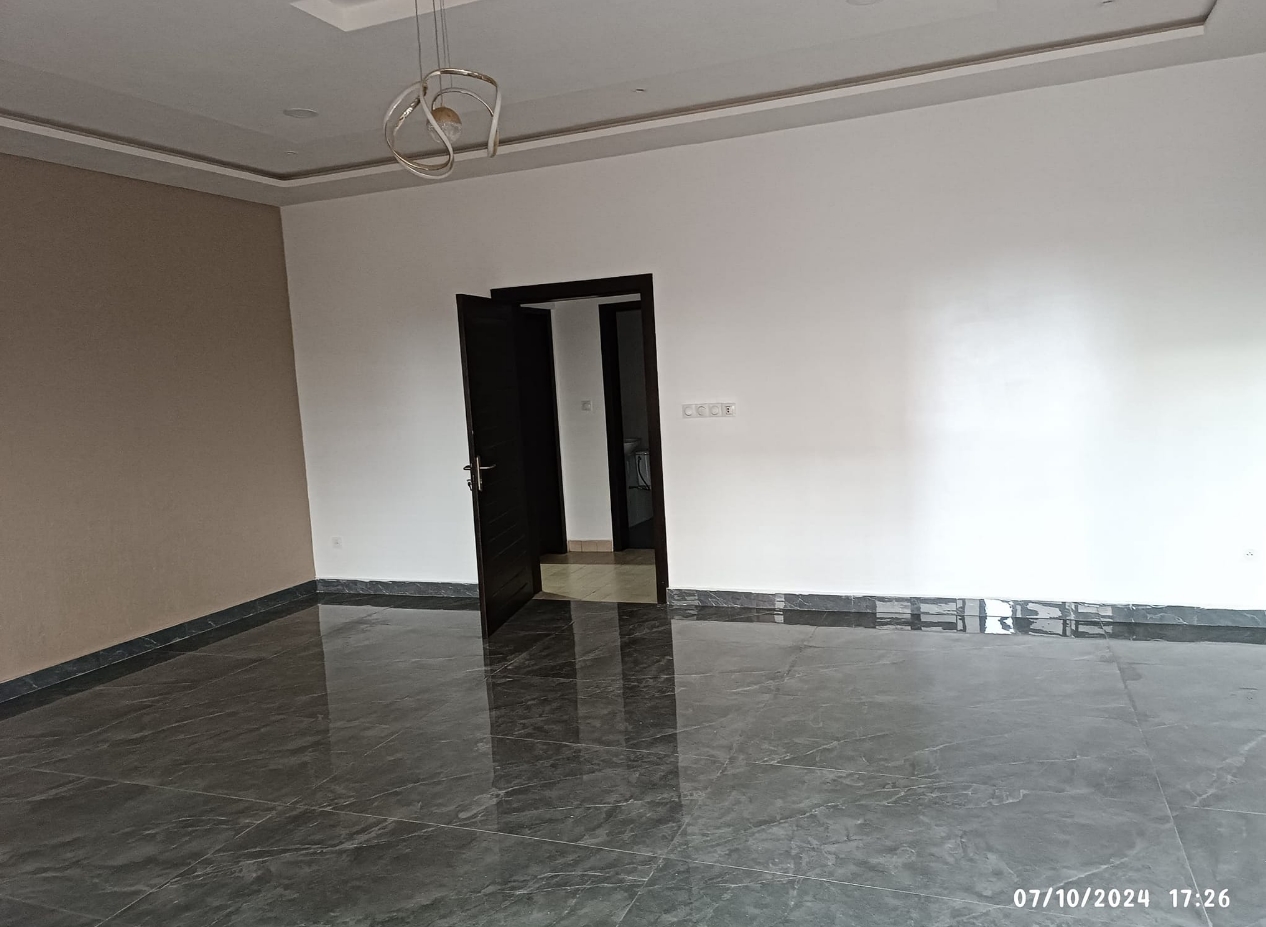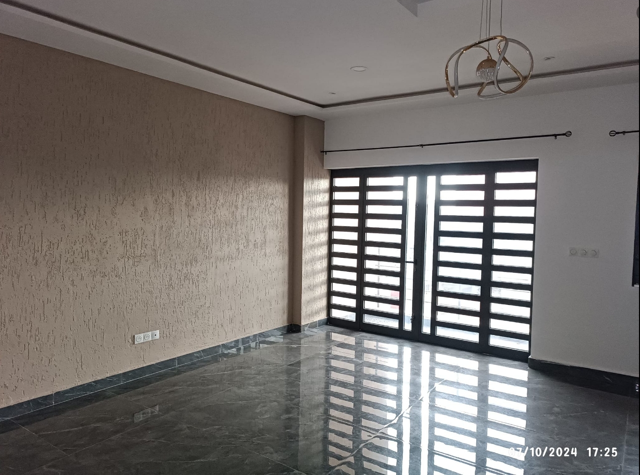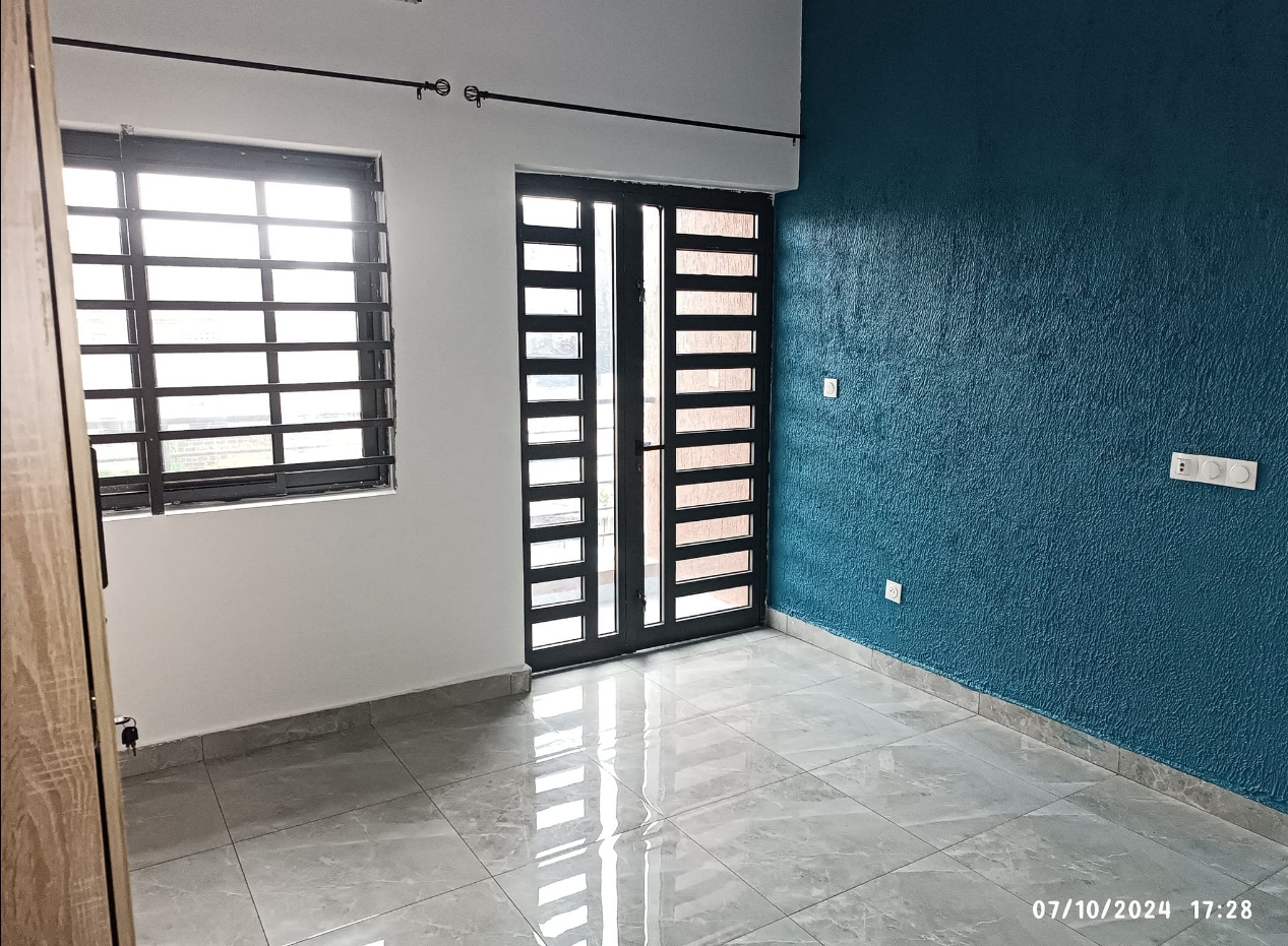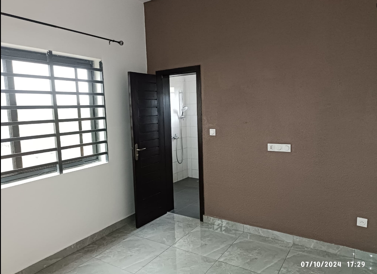 Un appartement de trois chambres chacune avec douche et armoire murale intégré et un Salon entièrement climatisé au premier étage d’un immeuble. Il dispose d’une cuisine spacieuse très moderne Garage personnel pour un véhicule Compteur Eau et Electricité personnels Gardien pour la nuit