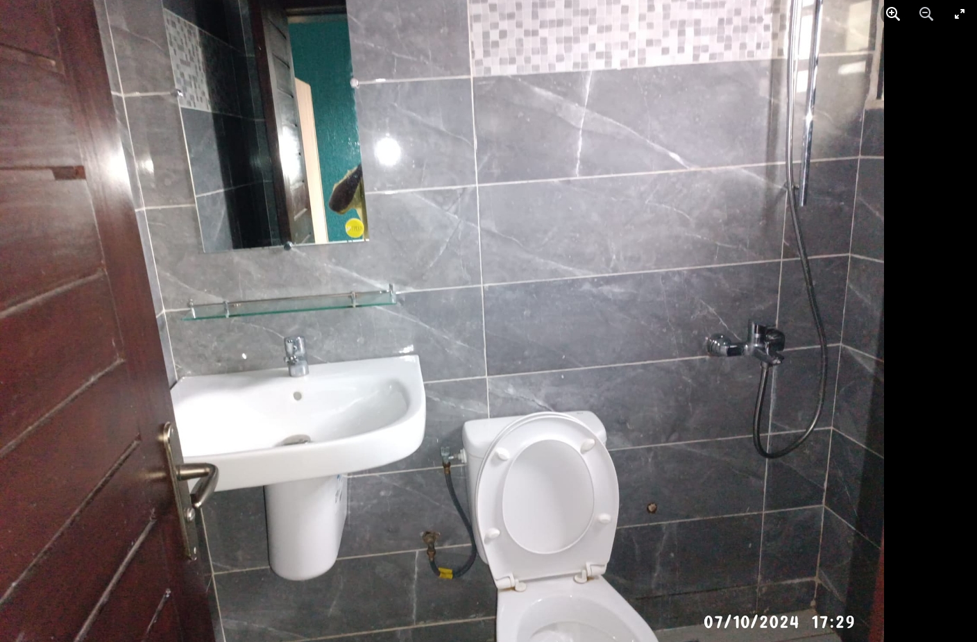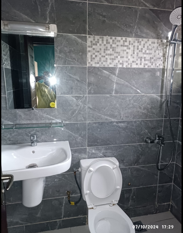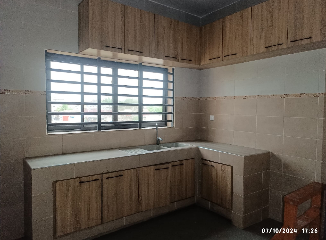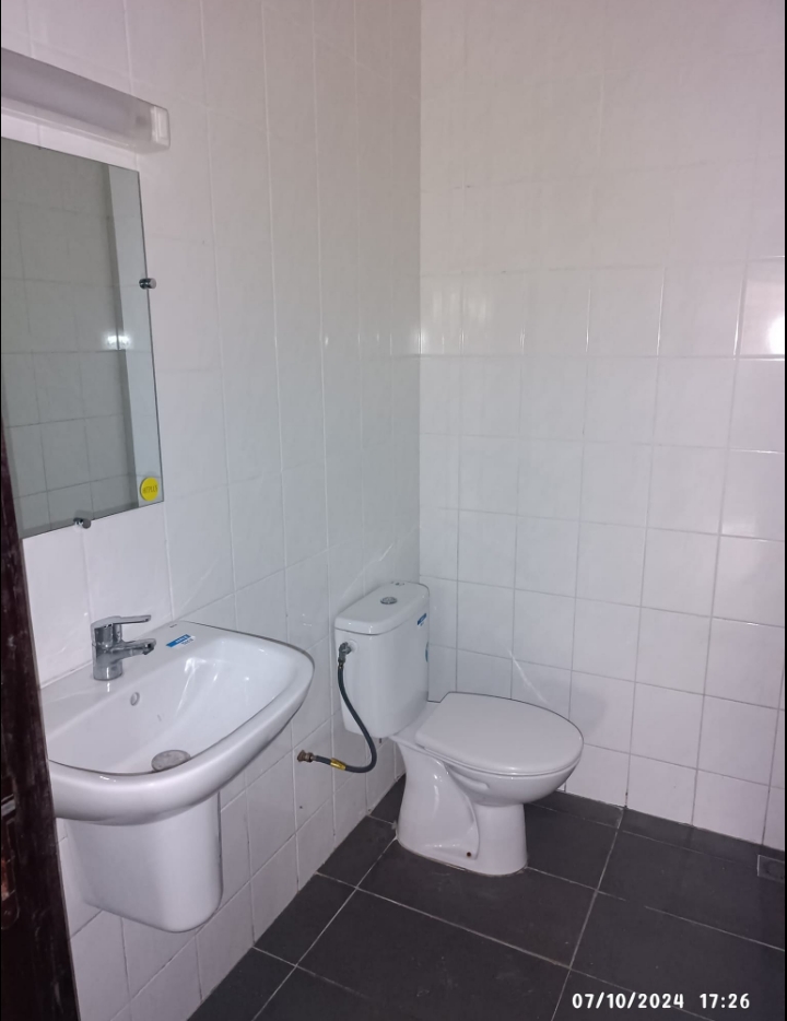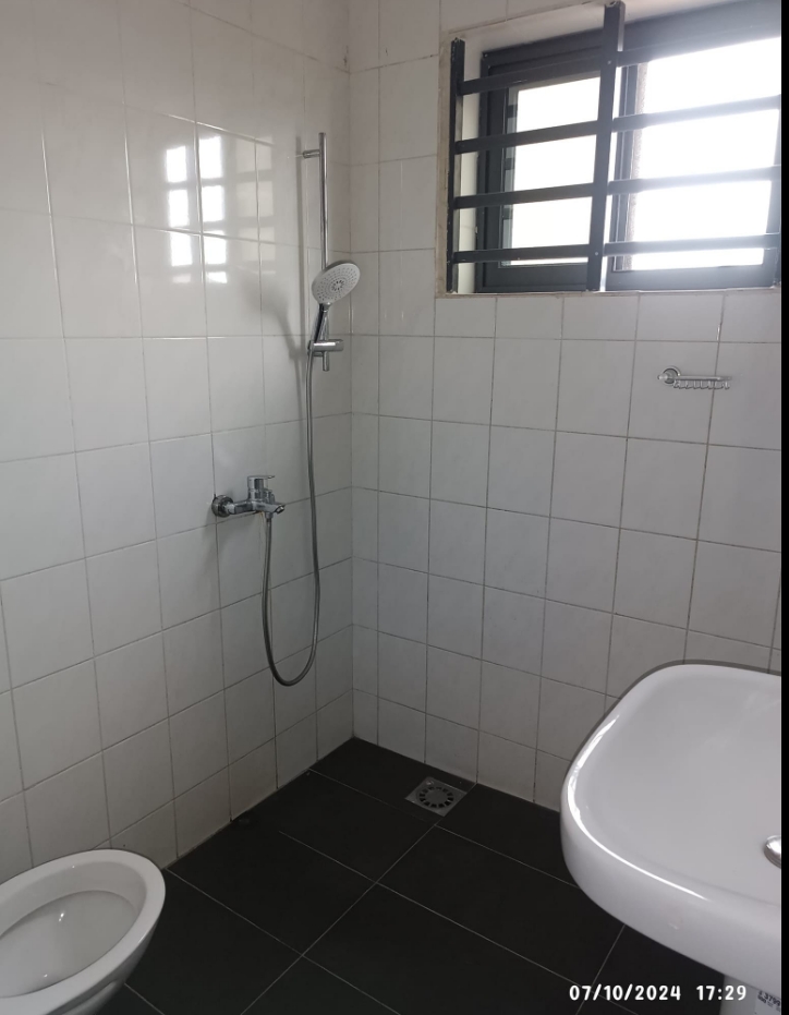 Un appartement de trois chambres chacune avec douche et armoire murale intégré et un Salon entièrement climatisé au premier étage d’un immeuble. Il dispose d’une cuisine spacieuse très moderne Garage personnel pour un véhicule Compteur Eau et Electricité personnels Gardien pour la nuit