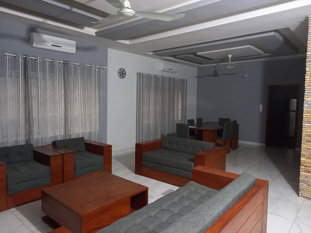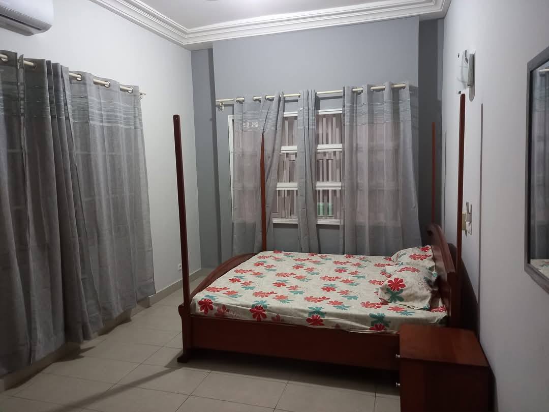 - 05 chambres chacune avec sa douche. - Un salon équipé avec salle à manger. - Une cuisine équipée et fonctionnelle. - Trois dépendances. - Un bureau. - Un jardin. - Une guérite. - Un garage pour deux voitures. - Un système de vidéo surveillance